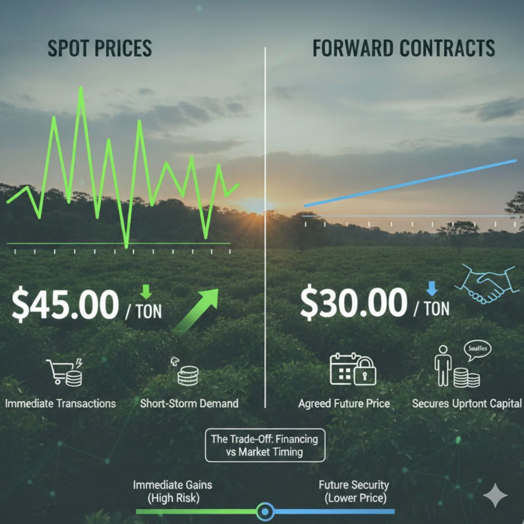 Spot priced carbon credits are offsets purchased on an as-needed basis to address immediate or short-term sustainability goals. Unlike longer-term offtake agreements, which involve a commitment to purchase offsets over an extended period, spot credits are a one-time transaction and require no ongoing obligation.